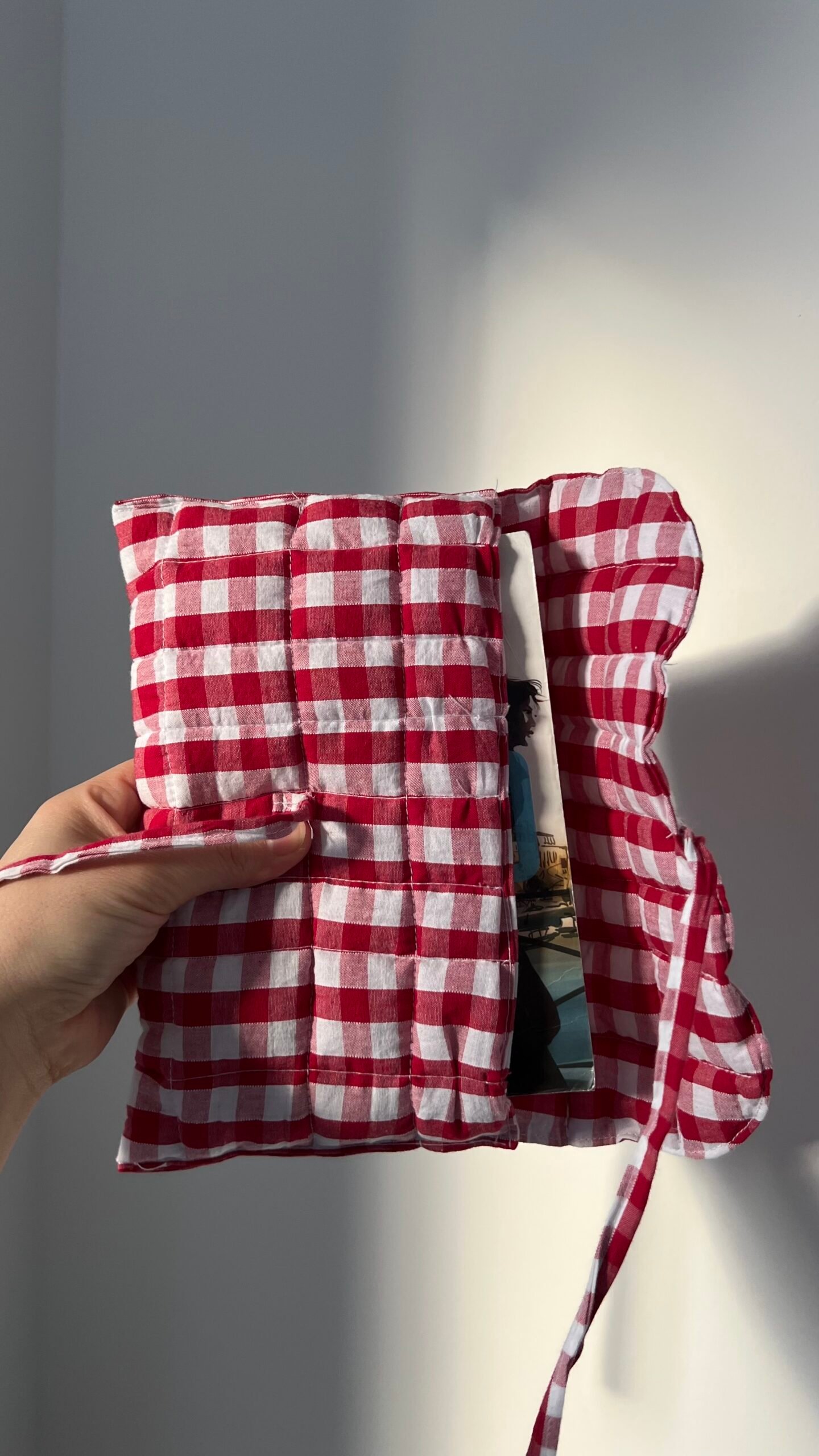 Housse de livre enveloppe vichy rouge matelassé
